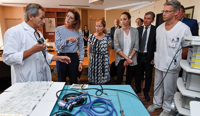 88000 euros, c’est la somme récoltée par le groupement des entreprises monégasques (GEMLUC) lors de la soirée des Euros de l’Espoir. Cet argent a permis de financer l’acquisition de trois équipements pour soutenir la prise en charge des cancers en urologie au sein du centre hospitalier Princesse Grace (CHPG). Mercredi 19 septembre, c’est en présence de la princesse Caroline de Hanovre qu’ils ont été présentés. Il s’agit d’un utéroscope (endoscope souple), une sonde d’échographie coelioscopique pour robot chirurgical, ainsi que des équipements complémentaires pour le laser chirurgical d’urologie. Depuis sa création en octobre 1973, le Gemluc a récolté plus de 1,6 million d’euros pour la lutte contre le cancer. Des sommes souvent distribuées en subventions pour la recherche ou en bourses d’études, mais également en matériels de soins et de prévention contre le cancer.