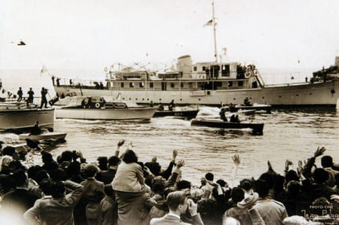 Le 12 avril 1956, arrivée de Grace Kelly à bord du Deo Juvante dans le port de Monaco. © Photo Jean-Pierre