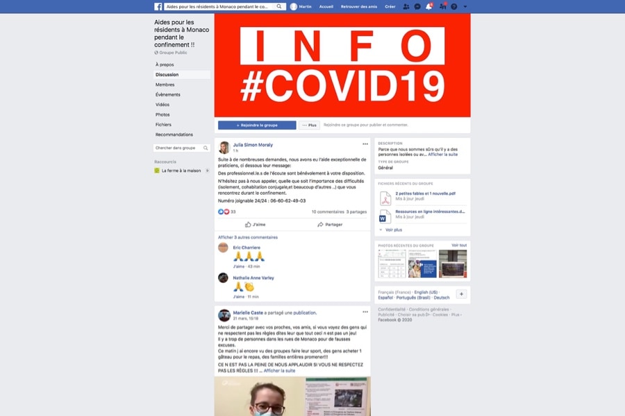 «Dépendant de tous, vous ne dépendez de personne. » L’aphorisme est de Jules Romains (1885-1972), dans son œuvre théâtrale la plus fameuse Knock ou Le triomphe de la médecine (1924), et pourrait donner une définition du mot solidarité. Après l’émoi des premiers instants, les difficultés à s’organiser, et à respecter les consignes strictes, la solidarité entre habitants se met en place. Maria-Cécile VanMoen, directrice adjointe de la Croix-Rouge monégasque, en charge de la formation, observe avec douceur et prudence cette solidarité à l’œuvre dans le pays. « On a vu de l’entraide qui se faisait. Ça faisait longtemps qu’on ne l’avait pas vu. C’est quelque chose qu’on n’a jamais connu, hormis ceux qui ont connu la guerre. On a vu des liens entre des personnes qui ne se parlaient pas, entre voisins, et qui se parlent là, qui s’apostrophent par les fenêtres. Il faut juste faire attention de ne pas aller trop loin. Je ne vais pas aider tout le quartier. Aidons déjà ceux qui sont dans l’immeuble. » Ce à quoi corrobore Julia Simon Moraly, cheffe d’une entreprise de décoration et créatrice du groupe Facebook « Aide pour les résidents à Monaco pendant le confinement !! ». Cette dernière, résidente à Monaco depuis 2017, a anticipé dès le dimanche 15 mars le confinement à venir. Craignant d’abord pour sa propre situation en cas de maladie dans son foyer, étant éloignée de sa famille, Julia a lancé le groupe pour créer un réseau en cas de problème. « A Monaco beaucoup de familles sont éloignées de leur cœur familial […]. Je me suis dit, il y a plein de monde dans le même cas que moi. […] C’est ce qui m’a motivé à créer ce groupe. Voyant le confinement arriver sur la principauté, je me suis dit : « Ce n’est pas possible qu’on ne fasse pas quelque chose avec les 30 000 résidents de la principauté ». »