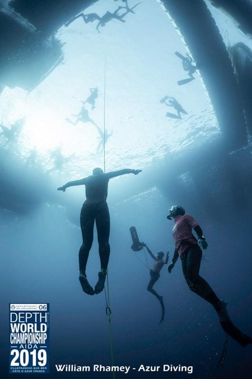 L’instant en surface est précieux. Trois minutes avant de plonger au fond de la mer, tous les apnéistes se retrouvent dans leur bulle. Presque face au phare de Saint-Jean-Cap Ferrat, dans la rade de Villefranche-sur-Mer, le site est réputé pour ses profondeurs autant que pour son calme. C’est à cet endroit que pendant une semaine les meilleures athlètes mondiaux de la discipline se sont donné rendez-vous pour les championnats du monde d’apnée. Il s’agit des cinquièmes championnats du monde AIDA pour Villefranche-sur-Mer, organisateur de l’événement en 1996, 2000, 2005 et 2012. L’occasion de voir des apnéistes hommes et femmes, en poids constant, avec ou sans palmes et en immersion libre. Concrètement, ces hommes-dauphins atteignent des profondeurs impressionnantes, parfois bien plus de 100 mètres, avec la seule aide de leurs poumons compressés par la pression de l’eau, de leur mental serein et apaisé et d’une bonne dose de courage.