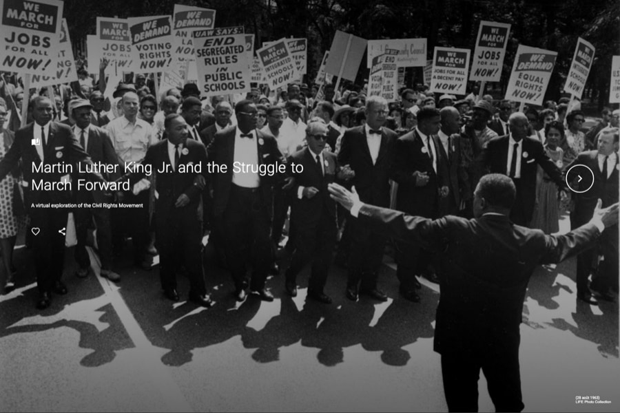 Sur Internet. Renseignements : artsandculture.google.com. Lien : artsandculture.google.com/exhibit/martin-luther-king -jr-and-the-struggle-to-march-forward/9QKy3DPFRLYlKw.