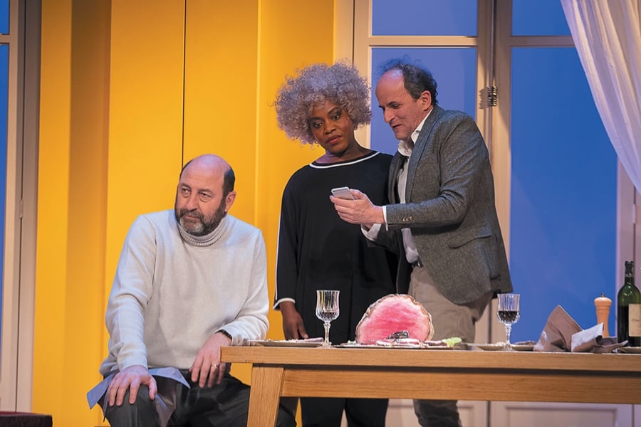 Amis, avec Kad Merad, Claudia Tagbo et Lionel Abelanski. © Photo Céline Nieszawer