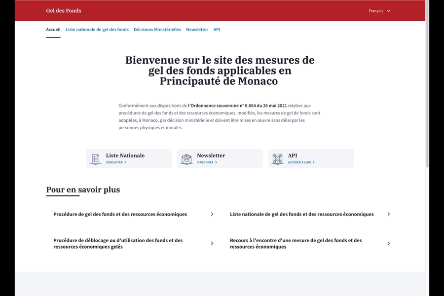 Toutes les décisions de gel des fonds et des ressources économiques, prises par le ministre d’État, en application de l’ordonnance souveraine n° 8 664 du 26 mai 2021, seront désormais publiées sur un site Internet dédié. La direction du budget et du trésor, en collaboration avec la direction des services numériques, a en effet lancé le site « geldefonds.gouv.mc ». Cette plateforme numérique recense l’ensemble des personnes physiques et morales, entités ou organismes devant faire l’objet d’une procédure de gel de fonds et des ressources économiques en principauté, en application de sanctions économiques internationales. Cette liste nationale, créée par l’ordonnance souveraine du 26 mai 2021, sera tenue à jour par la direction du budget et du trésor, lors de chaque ajout, suppression ou modification des inscriptions. Ce site Internet permet aux professionnels assujettis d’accéder à la liste nationale et de télécharger la dernière version mise à jour, mais aussi de bénéficier de l’interface de programmation d’application (API) gel de fonds, pour accéder directement au flux de la liste nationale. « Les fonctionnalités proposées répondent ainsi aux recommandations formulées dans le cadre de l’évaluation du dispositif monégasque de lutte contre le blanchiment des capitaux et le financement du terrorisme (MONEYVAL) et atteste de l’engagement de la principauté de Monaco à se maintenir au plus haut niveau d’exigence des standards internationaux », estime le gouvernement monégasque.